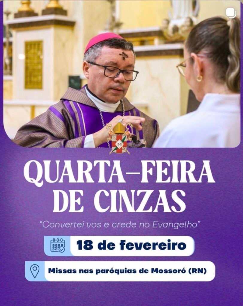 A Diocese de Mossoró informa os horários das celebrações da Quarta-feira de Cinzas, no próximo dia 18 de fevereiro, marcando o início do Tempo da Quaresma — período de oração, penitência e conversão na Igreja Católica. A programação contempla as paróquias de Mossoró e a cidade de Tibau (RN). Em todas as missas será realizado […]