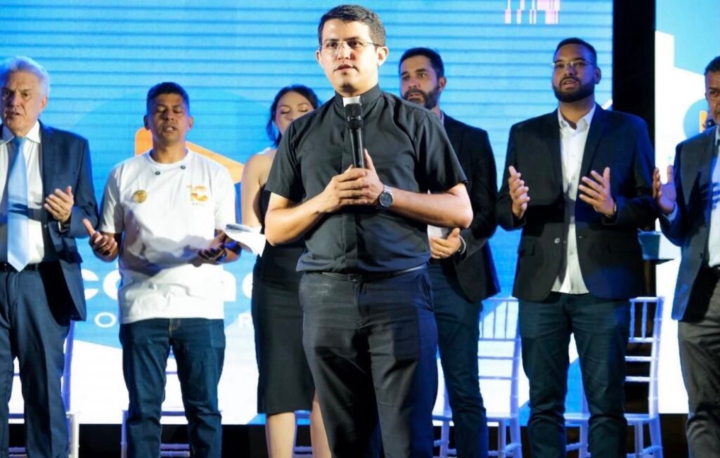 Para representar o Diocesano Santa Luzia nesse momento de grande honra, estiveram presentes Pe. Isaías Costa, Assistente Espiritual do colégio, e Fernanda Lopes, Diretora Administrativa.